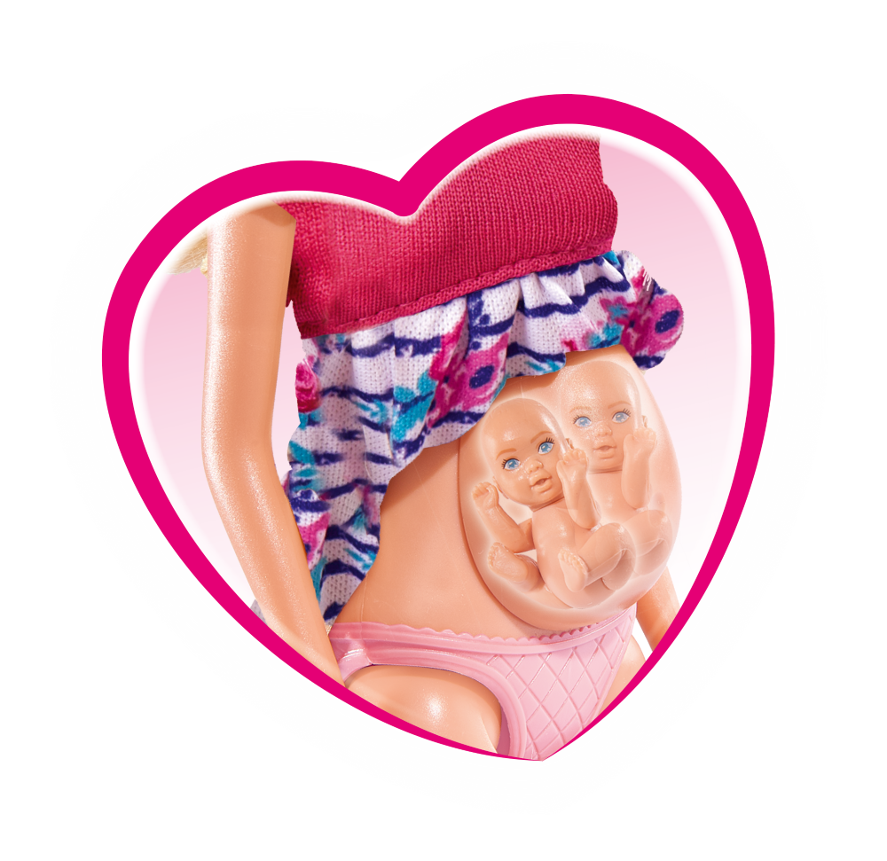 Papusa Steffi insarcinata cu gemeni + masuta de schimbat scutece si multe accesorii, 29 cm