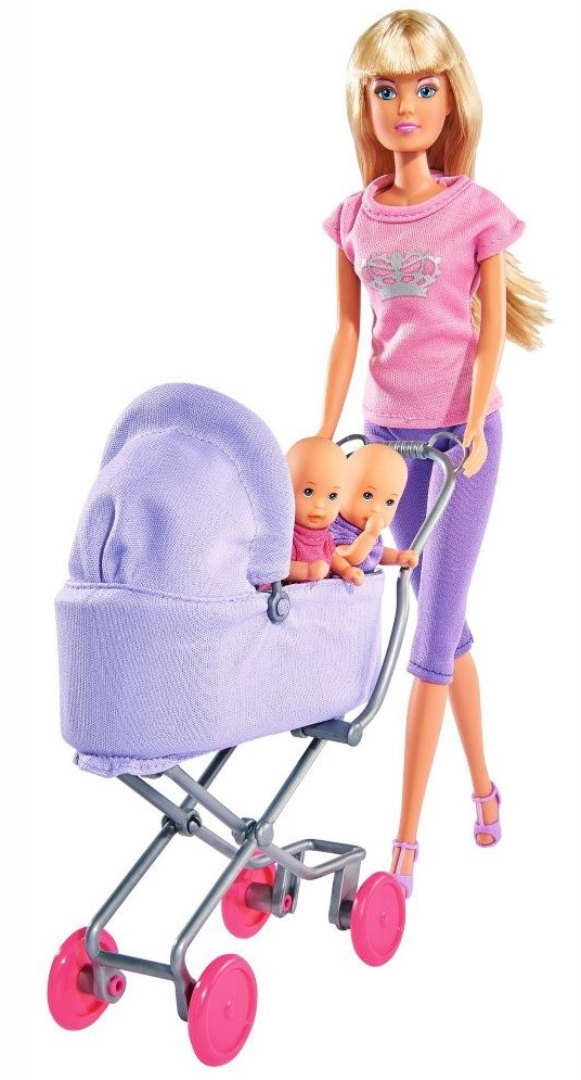 Steffi a iesit la plimbare cu cei doi copilasi. Fiind si o mama responsabila, ea are grija de ei cu ajutorul accesoriilor incluse. Setul contine 2 bebelusi de 5 cm, accesorii pentru joaca si hranirea bebelusilor, 1 carucior, 1 papusa Steffi