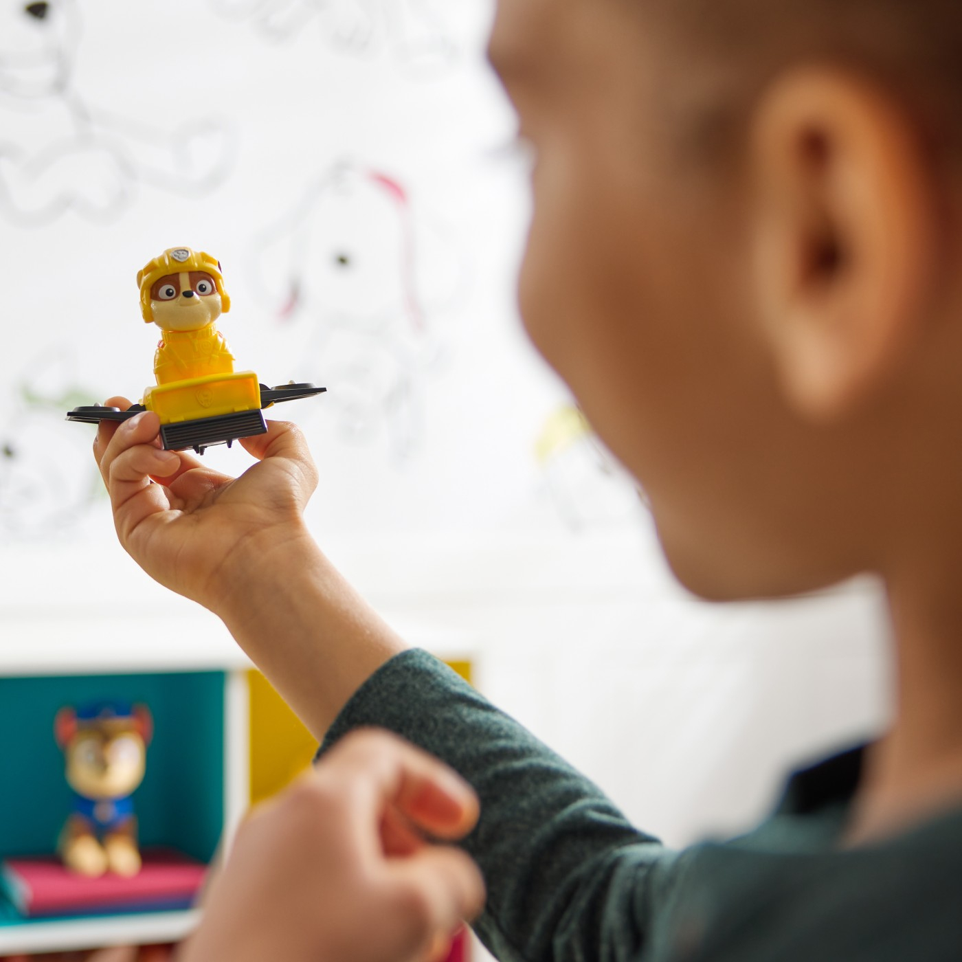 Zboara in actiune cu Action Pups figurina Patrula catelusilor si minunatul sau vehicul de salvare hoverboard. Cand este timpul pentru o misiune de salvare plina de actiune, prinde picioarele figurinei pe pozitie si extinde aripile hoverboard-ului, transformandu-l intr-un avion de jucarie captivant, inainte de a zbura intr-o misiune de salvare plina de adrenalina. Figurina are o inaltime de peste 5 cm si este echipat cu jacheta de zbor albastra si casca de pilot, la fel ca in serial. Pentru si mai multe moduri interesante de a te juca, cauta-i pe Marshall, Skye, Rubble, Rocky si Zuma, pentru a forma cea mai buna echipa de salvare. Jucariile pentru prescolari din Patrula catelusilor si jucariile de invatare pentru copii mici sunt cadouri pentru copiii care sunt fani ai serialului, incurajand jocul plin de imaginatie si imbunatatirea abilitatilor motorii fine. Retraieste momentele tale preferate din sezoanele Patrulii catelusilor, cum ar fi Mighty Pups si filmul Patrula catelusilor, apoi creeaza-ti propriile aventuri cu cateii din Patrula catelusilor si masinutele lor corespunzatoare (fiecare se vinde separat). Creste-ti entuziasmul cu seturile complete ale echipei Action Pups si Air Rescue, care includ vehicule din Patrula catelusilor, personaje de actiune si jucarii pentru copiii mici, pentru ore nesfarsite de aventuri cu catelusi, inspirate din serial. Acest set contine figurina Rubble.