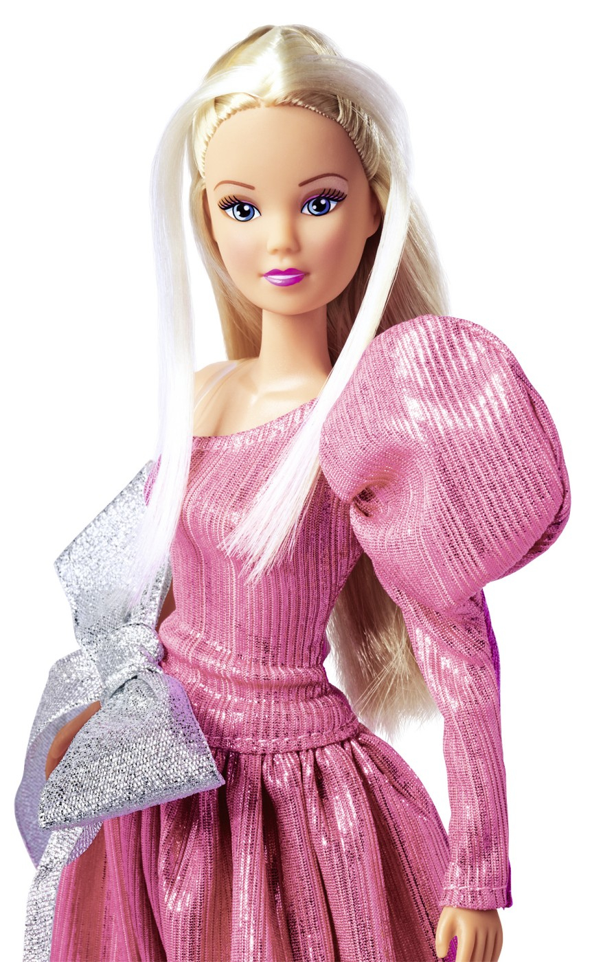 Steffi LOVE este o adevarata papusa fashion. Îi plac hainele sic si tunsorile la moda. Fetele isi pot coafa si imbraca papusa conform tendintelor actuale ale modei. Steffi incanta intr-o frumoasa rochie de seara roz cu maneci bufante si o fundita uriasa argintie. Este pregatita pentru covorul rosu in aceasta tinuta. Inaltime papusa 29 cm.
