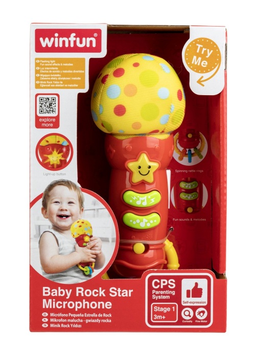 Descoperiti microfonul interactiv pentru bebelusi, o jucarie captivanta si educativa conceputa special pentru cei mici, incepand cu varsta de 3 luni. Microfonul pentru bebelusi este dotat cu lumina intermitenta care capteaza imediat atentia copiilor, transformand fiecare moment de joaca intr-o experienta magica. Butonul activeaza efecte sonore distractive, aducand un plus de farmec fiecarei sesiuni de joaca. Sunetele variate si placute stimuleaza simtul auditiv al copiilor, incurajandu-i sa interactioneze si sa descopere noi modalitati de a se juca. Microfonul este echipat si cu inele rotative texturate, care adauga o dimensiune tactila jucariei. Aceste inele sunt usor de prins si de rotit, stimuland dezvoltarea abilitatilor motorii fine si a coordonarii mana-ochi. Acest microfon este un instrument excelent pentru dezvoltarea timpurie a copiilor. Designul colorat si luminile intermitente contribuie la dezvoltarea simtului vizual si la mentinerea interesului celor mici pentru perioade lungi de timp. Recomandat pentru copiii cu varsta de cel putin 3 luni, acest microfon interactiv este perfect pentru a sustine dezvoltarea armonioasa a bebelusilor.