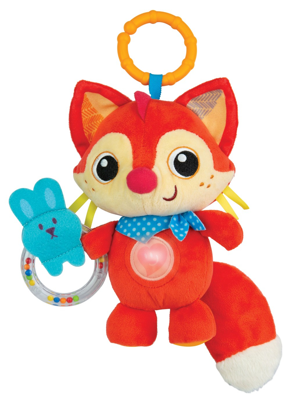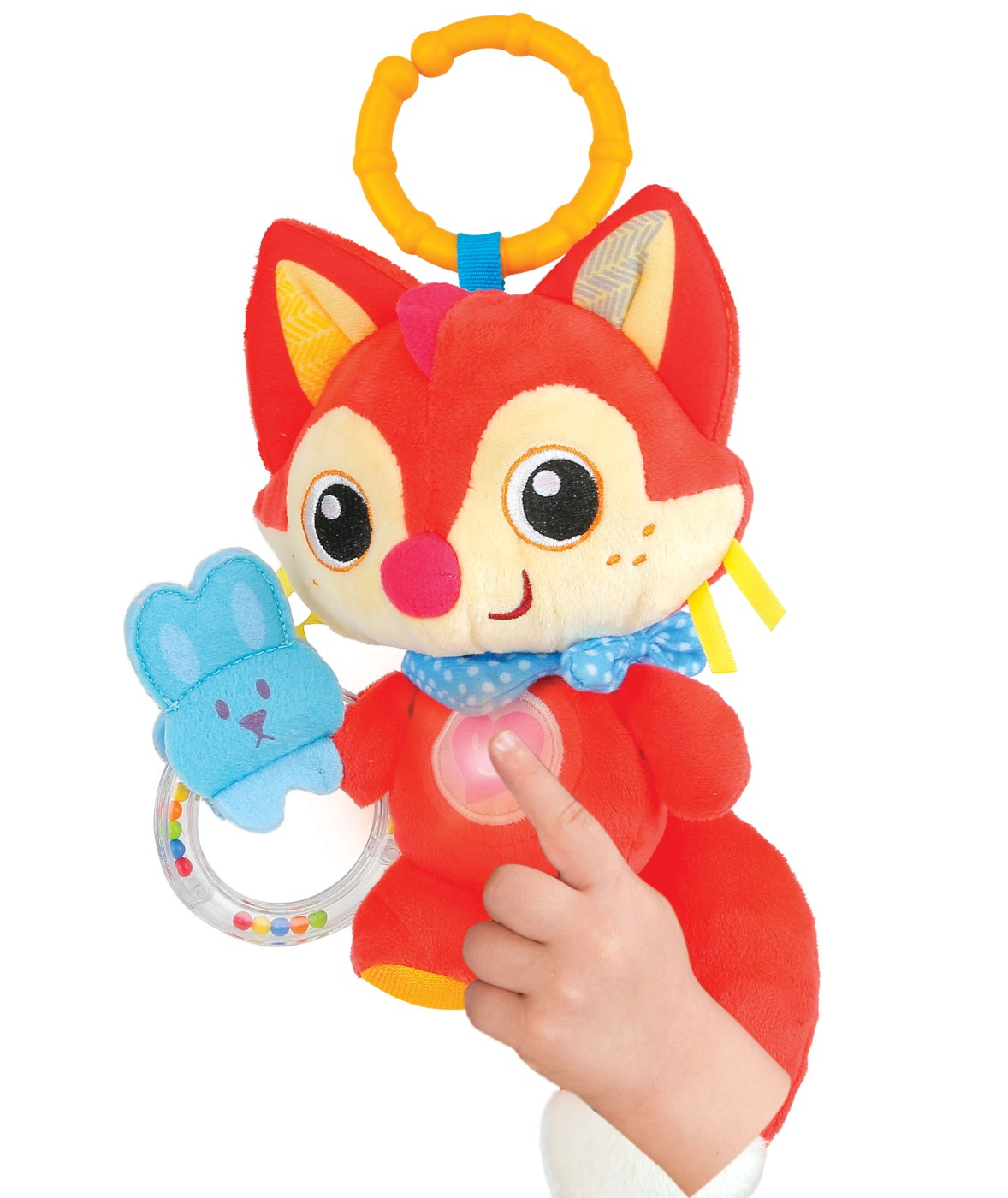 Agita si scutura vulpita adorabila pentru a oferi micutului tau o experienta plina de distractie si stimulare senzoriala! Aceasta jucarie captivanta este conceputa pentru copiii cu varsta incepand de la 3 luni si ofera o varietate de activitati care ii vor fascina si ii vor dezvolta simturile in mod placut. Vulpita vine echipata cu inele zornaitoare texturate, ideale pentru dezvoltarea simturilor tactile ale copilului. Butonul luminos, care poate fi apasat pentru a activa sunete amuzante si fraze, contribuie la dezvoltarea auzului si curiozitatii. Pentru o functionalitate practica, jucaria include un inel din plastic pentru atasare usoara. Acest inel permite fixarea vulpitei pe diferite suprafete sau dispozitive precum carucioare, scaune auto sau chiar leagane. Prin interactiunea activa cu vulpita, micutul tau isi va dezvolta abilitatile motorii fine, va invata despre cauzalitate (cum sa produca sunete prin agitarea jucariei) si va experimenta diverse texturi si senzatii tactile. Pe langa beneficiile senzoriale, jucaria promoveaza si dezvoltarea abilitatilor cognitive prin stimularea atentiei si concentrarii. Sunetele amuzante si frazele incurajeaza copilul sa exploreze si sa interactioneze cu mediul sau inconjurator intr-un mod care sa ii stimuleze curiozitatea si imaginatia.