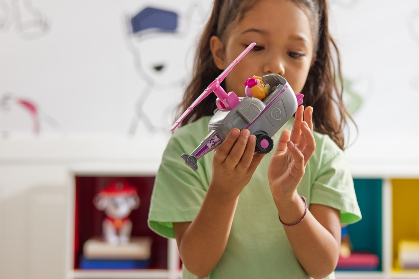 Vehiculele de baza cu functii de actiune mobile individuale si o figurina la bord permit aventurilor din serialul TV Paw Patrol sa traiasca si in camera copiilor. Este inclusa o singura figura cu un vehicul. Vehiculul si figurina de jucarie sunt in mare parte fabricate din plastic reciclat. Chase, Skye, Marshall, Rubble, Zuma, Everest, Tracker si Rocky cu vehiculele lor sunt disponibile individual. Toate vehiculele de baza durabile/vehiculele de baza includ o figurina de caine care poate fi atasata la vehicul si sunt compatibile cu setul de joaca de la sediul central, Paw Patroller si multe alte jucarii. Continut 1 vehicul, 1 figurina. Jucariile Paw Patrol de la Spin Master sunt potrivite pentru copiii de la 3 ani si peste si un cadou grozav pentru toti fanii Paw Patrol carora le place sa se joace cu masini de jucarie, figurine de jucarie si seturi de joaca. Acest set contine vehicul Elicopter si figurina Skye.