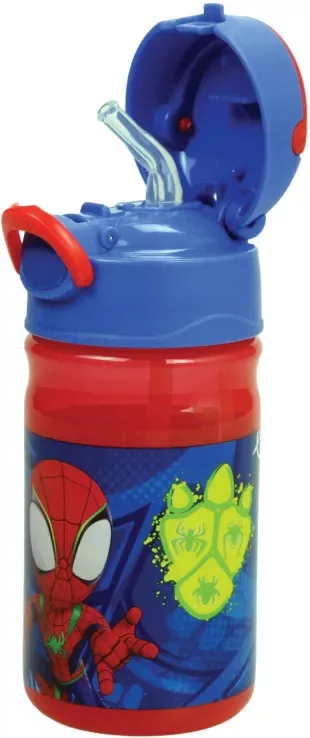 Sticlă copii Omul Păianjen Spidey Dino Webs, 350 ml, cu cârlig și pai.